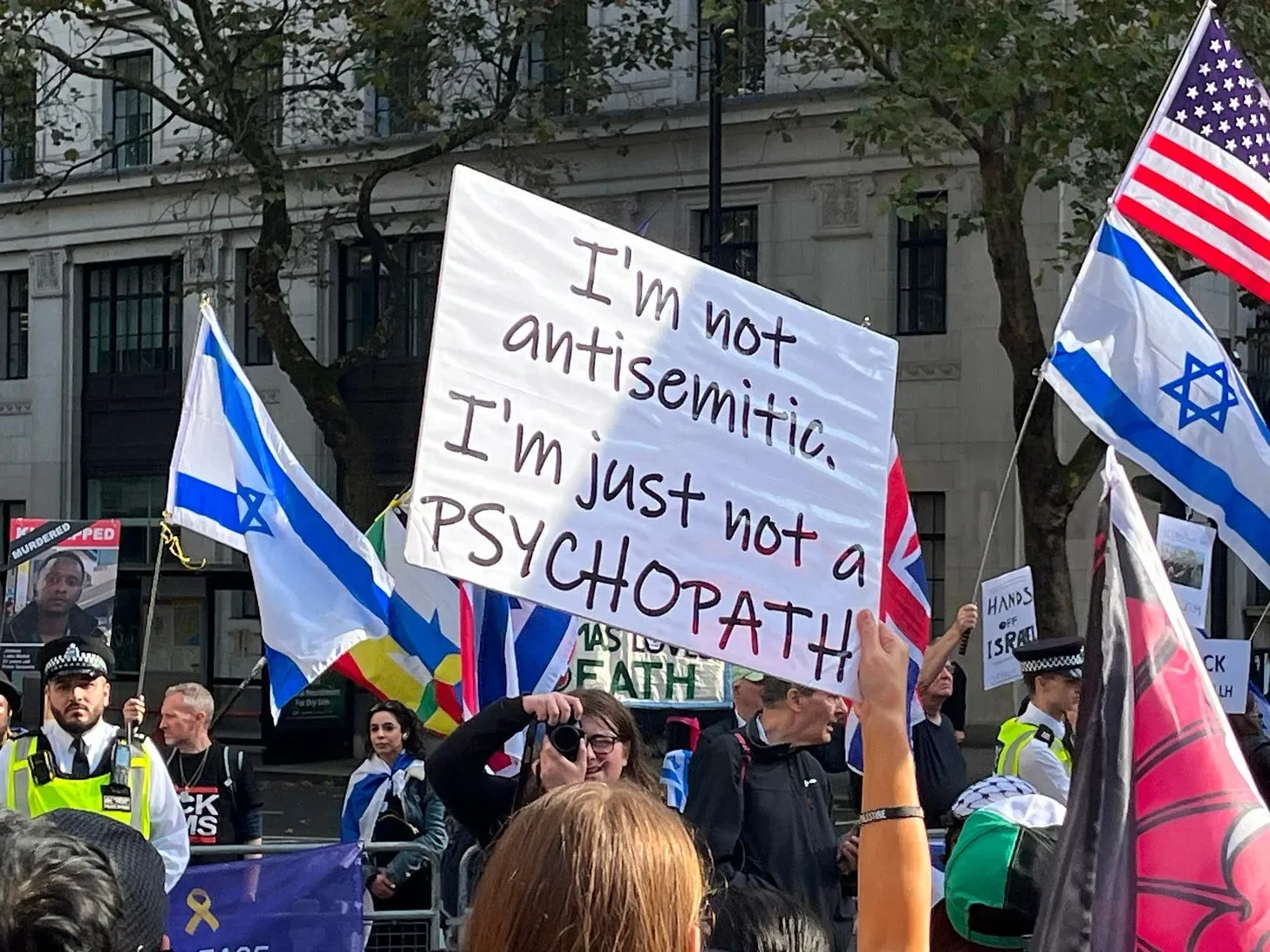 I attended the first national solidarity protest in London on October 5th. My partner, author Niki Orfanou, said we should go. Initially I hesitated, wondering if I might encounter antisemitism there, because this was how I’d basically been brainwashed growing up in a Jewish-Zionist youth movement. Then I realised that no instance of antisemitism, not even multiple instances, could even remotely compare to the Jewish-Zionist persecution of the Palestinians, so I understood that I had to attend and that any antisemitism would be outweighed by Zionist history. In the end, far from witnessing any antisemitism, I experienced this remarkable outpouring of humanity in which I was just one of many thousands of Jews who wanted to show empathy and solidarity. It became one of the most cathartic experiences of my life. Two weeks later, on October 19th, the day of the second national demonstration, I ventured into the quagmire of social media. My post received many more likes than I thought probable. Mixed among them were numerous anti-Palestinian comments, all of them passively or explicitly racist.