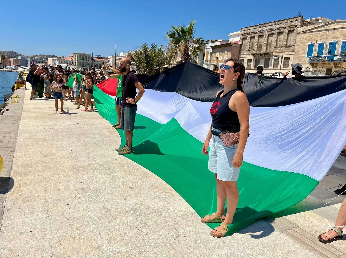 At the protest on the Greek island of Syros. Image: Tim Lawrence.
