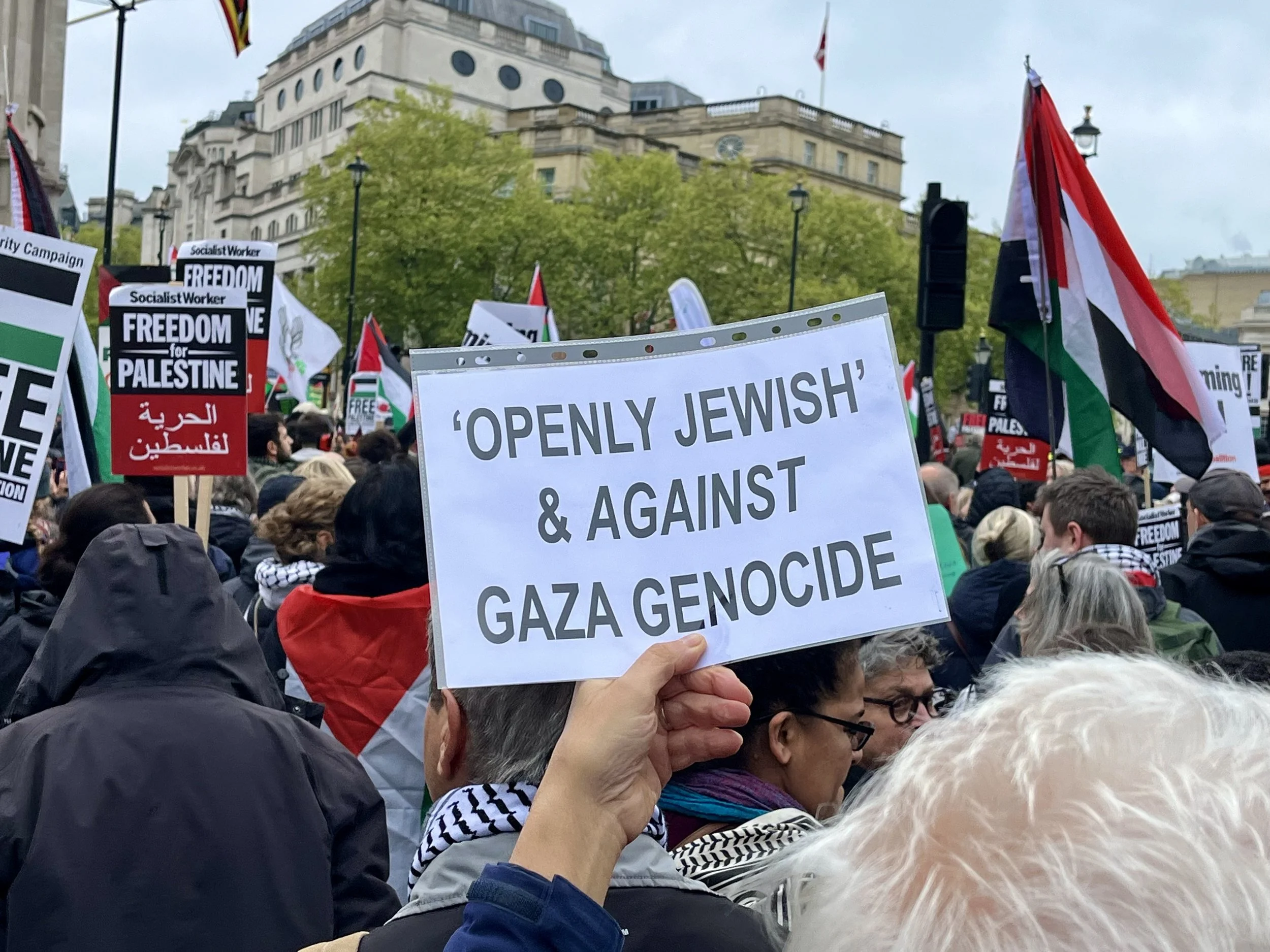 Placard from another solidarity demonstration in London. This one took place on 27 April 2024. It’s been heartening to see how many Jewish people are attending the rallies, especially because Netanyahu falsely claims to be carrying out the genocide in the name of the Jewish people. He’s not. The percentage of Jews who don’t identify with Zionism or are actively anti-zionist is way higher than the Jewish-Zionist mainstream would want us to believe—something like 40% in the UK. The figure is of course rising